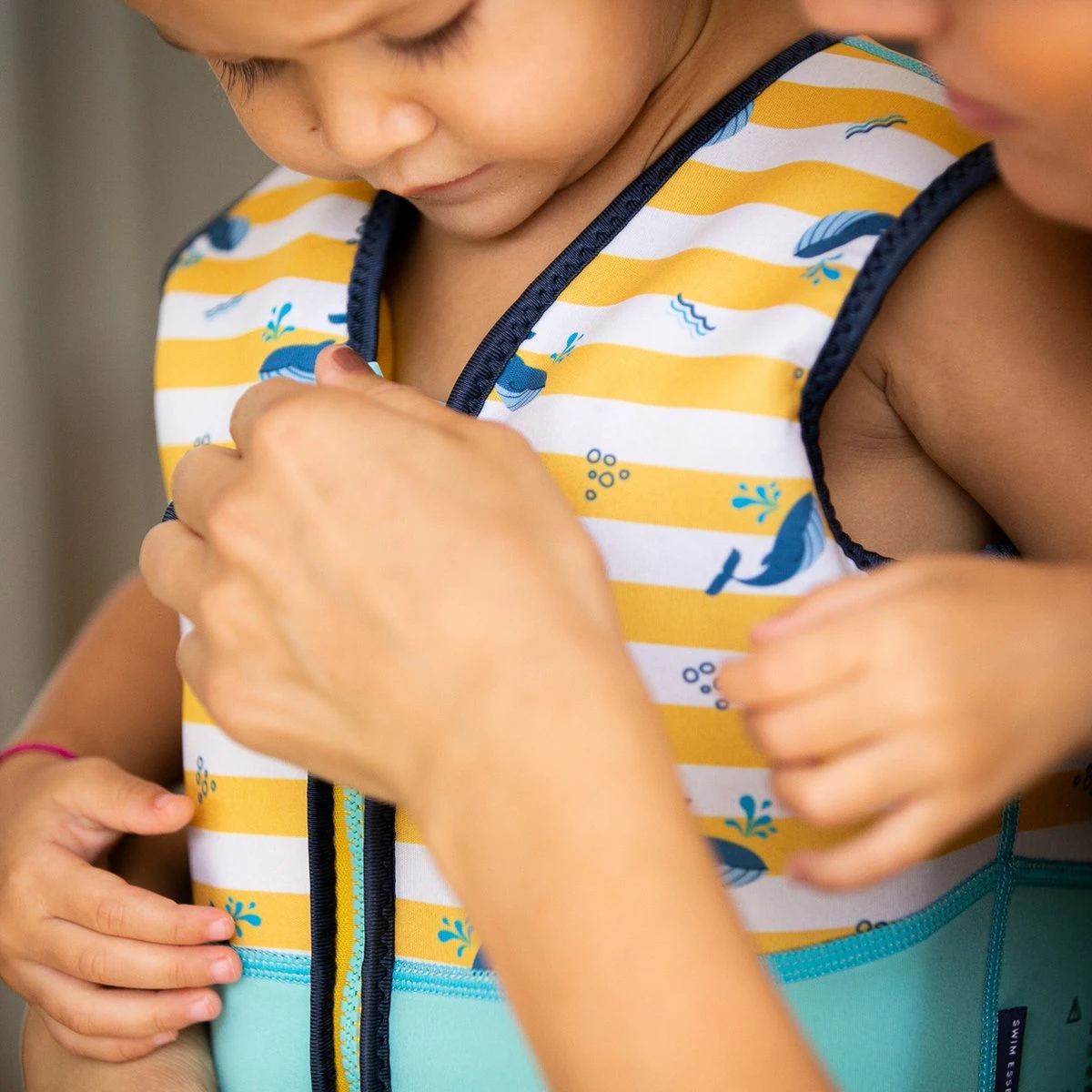 Dankzij dit nieuwe Swim Essentials zwemvest Walvissen kan jouw kindje de hele zomer veilig zwemmen en genieten van de waterpret! De blauw, wit en gele kleuren vallen goed op. Je kind heeft voldoende bewegingsvrijheid door de fijne pasvorm van het zwemvest. Het is geschikt voor kids tussen de 4 en 6 jaar oud (18-30 kg).