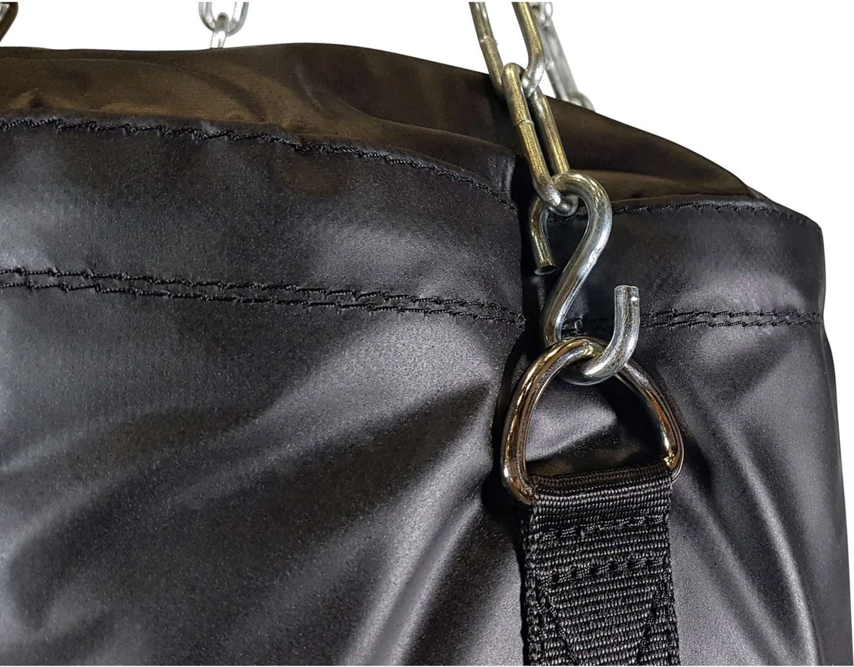 Thuis jouw bokshandschoenen aantrekken en even flink meppen? Dat kan door deze Tunturi Bokszak op te hangen. Ideaal als je na een lange dag wat stoom af wil/moet blazen of gewoon graag aan vechtsport doet. Deze stootzak is 100 cm. lang en bedoeld voor volwassenen. De bokszak is ook leverbaar in grotere formaten voor oudere kinderen en volwassenen. Daarbij geldt: hoe langer de stootzak, hoe meer gewicht erin kan. Je hangt de bokszak eenvoudig op aan de meegeleverde ketting. In de schuur bijvoorbeeld, op zolder of op de slaapkamer. Voor zwaardere zakken is het verstandig om een muursteun of plafondbeugel mee te bestellen.