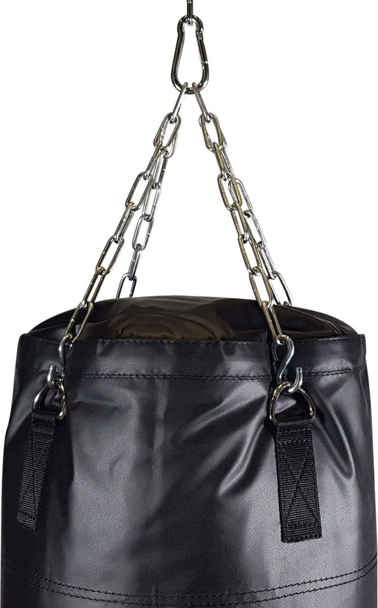Thuis jouw bokshandschoenen aantrekken en even flink meppen? Dat kan door deze Tunturi Bokszak op te hangen. Ideaal als je na een lange dag wat stoom af wil/moet blazen of gewoon graag aan vechtsport doet. Deze stootzak is 120 cm. lang en bedoeld voor volwassenen. De bokszak is ook leverbaar in grotere formaten voor oudere kinderen en volwassenen. Daarbij geldt: hoe langer de stootzak, hoe meer gewicht erin kan. Je hangt de bokszak eenvoudig op aan de meegeleverde ketting. In de schuur bijvoorbeeld, op zolder of op de slaapkamer. Voor zwaardere zakken is het verstandig om een muursteun of plafondbeugel mee te bestellen.