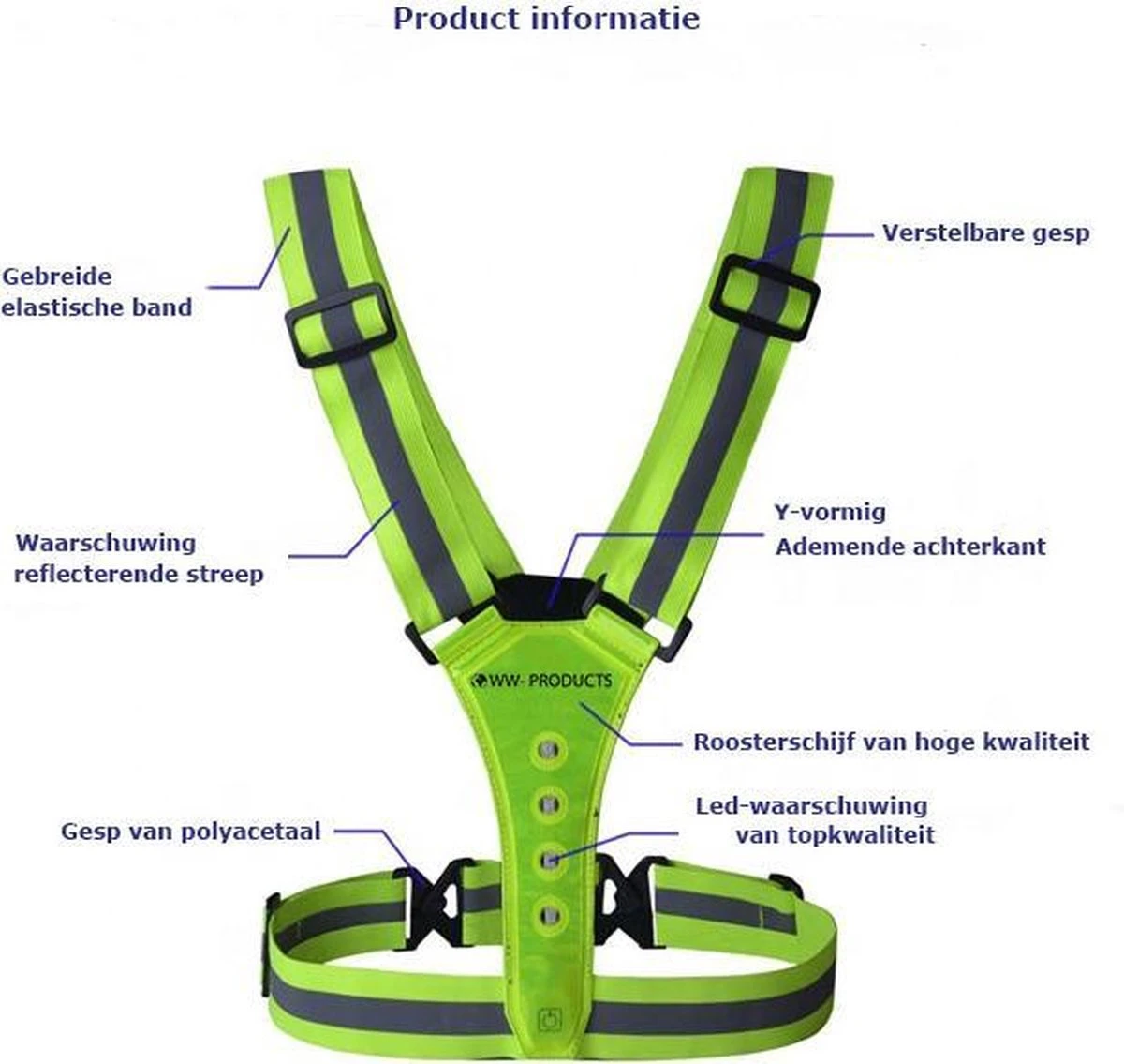 Niets is belangrijker dan het waarborgen van uw en andermans veiligheid tijdens het sporten (Wandelen, Fietsen, Hardlopen, etc)? Met dit Led vest bent u (ook op lange afstand) goed zichtbaar voor anderen, door de reflecterende kleuren en Led lampjes. Hiermee voorkomt u ongewenste en gevaarlijke situaties. Zoals u wellicht verwacht is dit vest bestand tegen slechte weersomstandigheden.