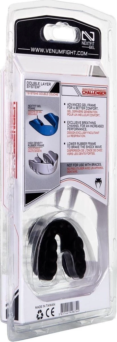 Het Venum Challenger Gel Bitje Volwassenen zorgt voor een optimale fitting en bescherming van de tanden. Het custom fit design helpt je bij het vormer en het stabiel houden van de monbescherming. Het onderste rubberlaagje zorgt voor een stevige bescherming met optimale demping.