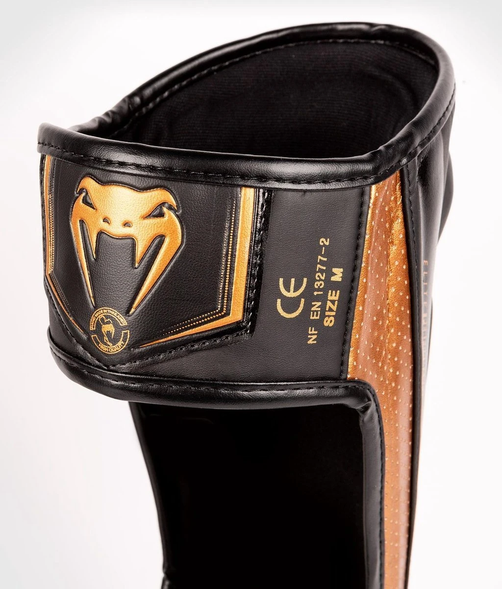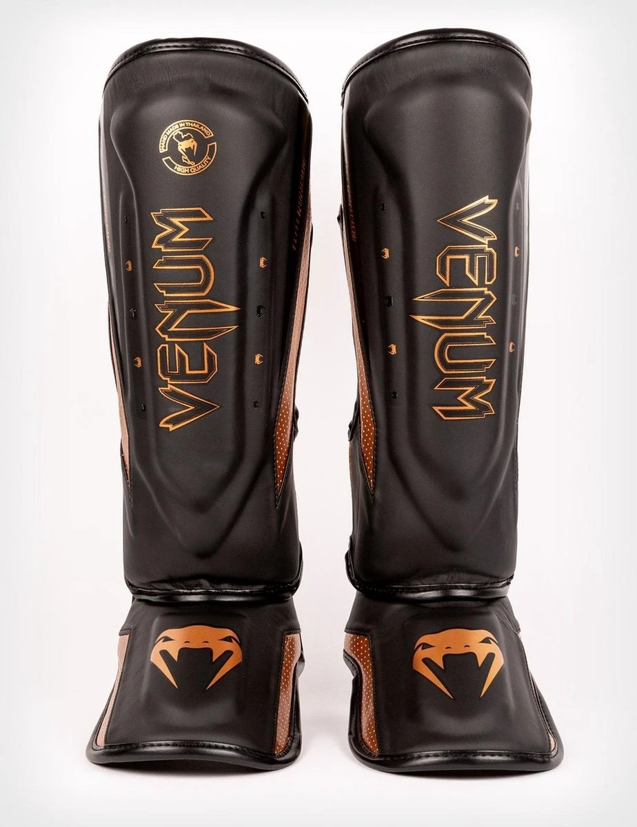 Venum Elite Evo Kickboks Scheenbeschermers Zwart Brons.
