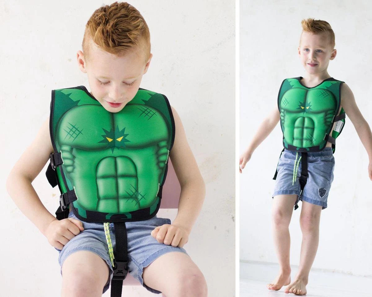 Hoe cool is dat?! Een eigen zwemvest dat je kind verandert in een echte superheld! Veiligheid wordt fun met deze drijfhulp van 3D voorgevormd EVA foam. Super leuk en handig zwemvest van Waimea voor kinderen ter ondersteuning bij het leren zwemmen en vertrouwd laten raken met het water. Veiligheid wordt fun met deze kleurrijke drijfhulp van EPE foam. De veilige kliksluitingen bevinden zich aan de zijkant en tussen de benen dus je metamorphose van gewoon naar superheld is zo gepiept!