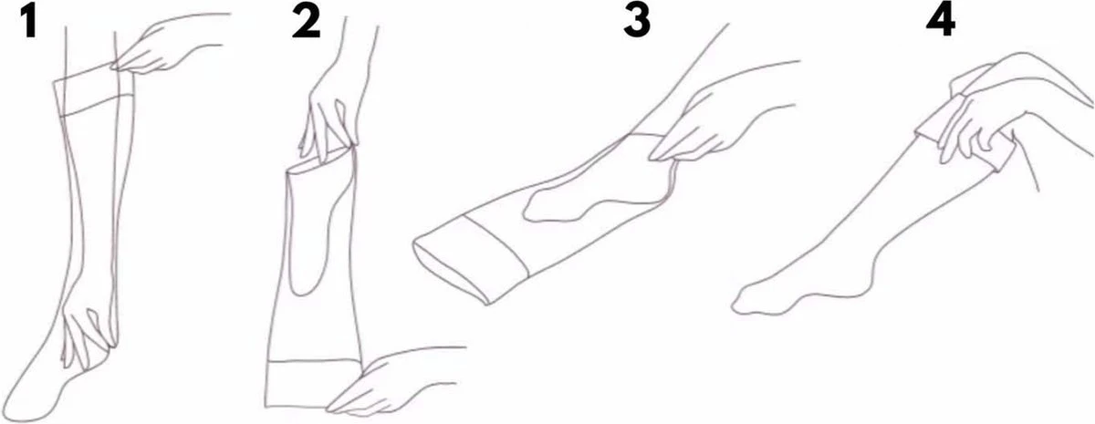 Let op compressiesokken worden anders aangetrokken dan normale sokken i.v.m. de compressie. Zie afbeelding voor de beste makkelijkste manier van aantrekken.