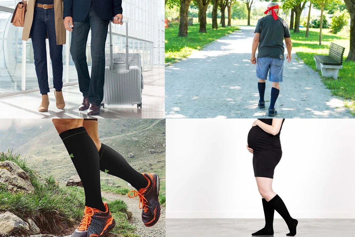 In het kort: Compressiekousen worden aanbevolen voor: bloedsomloop, zwelling, zware benen, spataderen, sport, reizen, zwangerschap, wandelen, vermoeidheid.