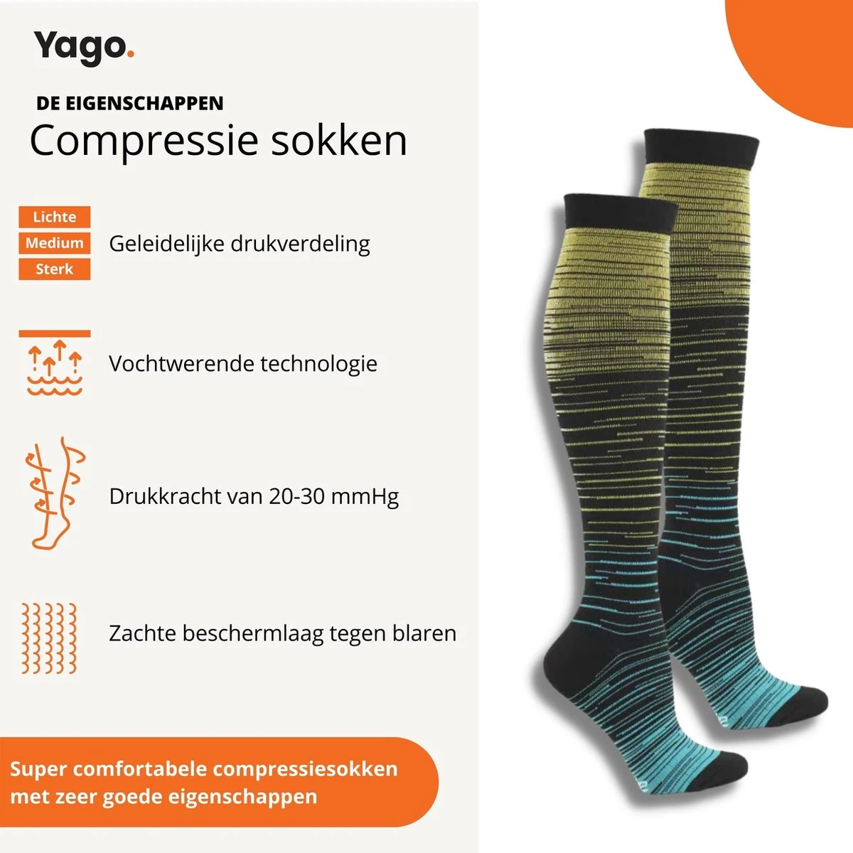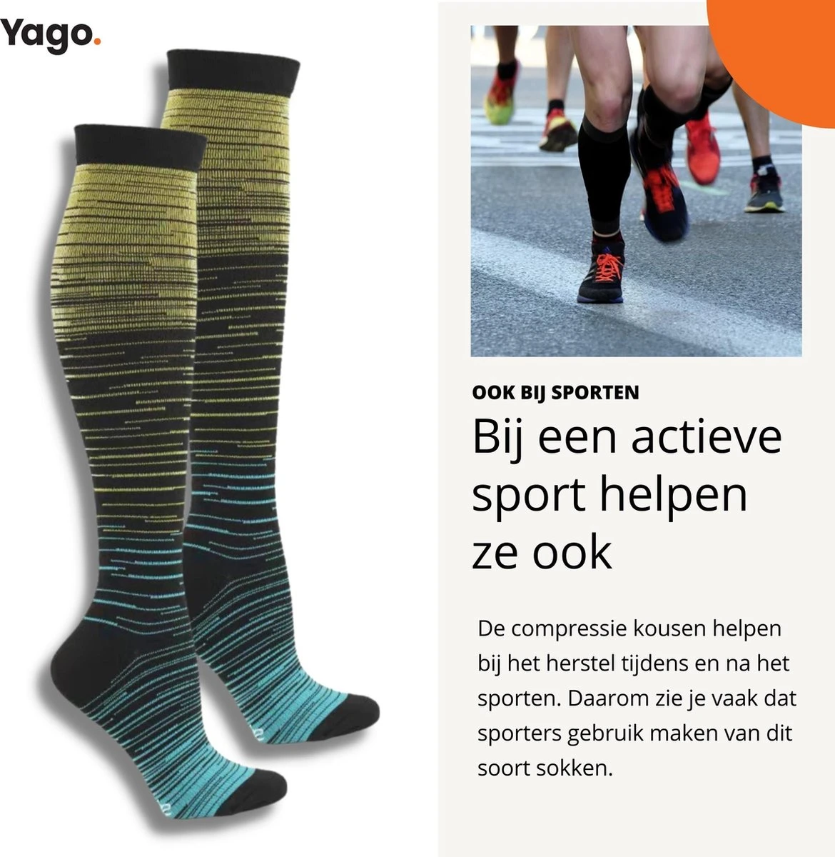 Yago – Compressiekousen L/XL – 2 Paar | Hardlopen | Steunkousen | Dames En Heren | Multifunctioneel | Reissokken | Wandelsokken | Unisex