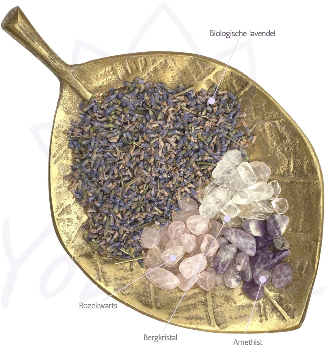 Wees lief voor jezelf! Met dit unieke kristal gevulde oogkussen kom je heerlijk tot rust. De kristalchips in combinatie met de lavendelgeur hebben een ontspannende werking en zijn onder andere perfect voor meditatie, reiki, kristalgenezing en yoga. Gebruik van het kussen kalmeert de zenuwen, verzacht, biedt verlichting bij vermoeide ogen, oververmoeidheid, hoofdpijn of migraine en herstelt de innerlijke harmonie. Het kan je zelfs helpen om beter te slapen in tijden van drukte en stress. Ook tijdens meditatie en de eindontspanning bij yoga wordt vaak gebruik gemaakt van een oogkussen. Allemaal goede redenen om dit fijne oogkussen aan te schaffen.