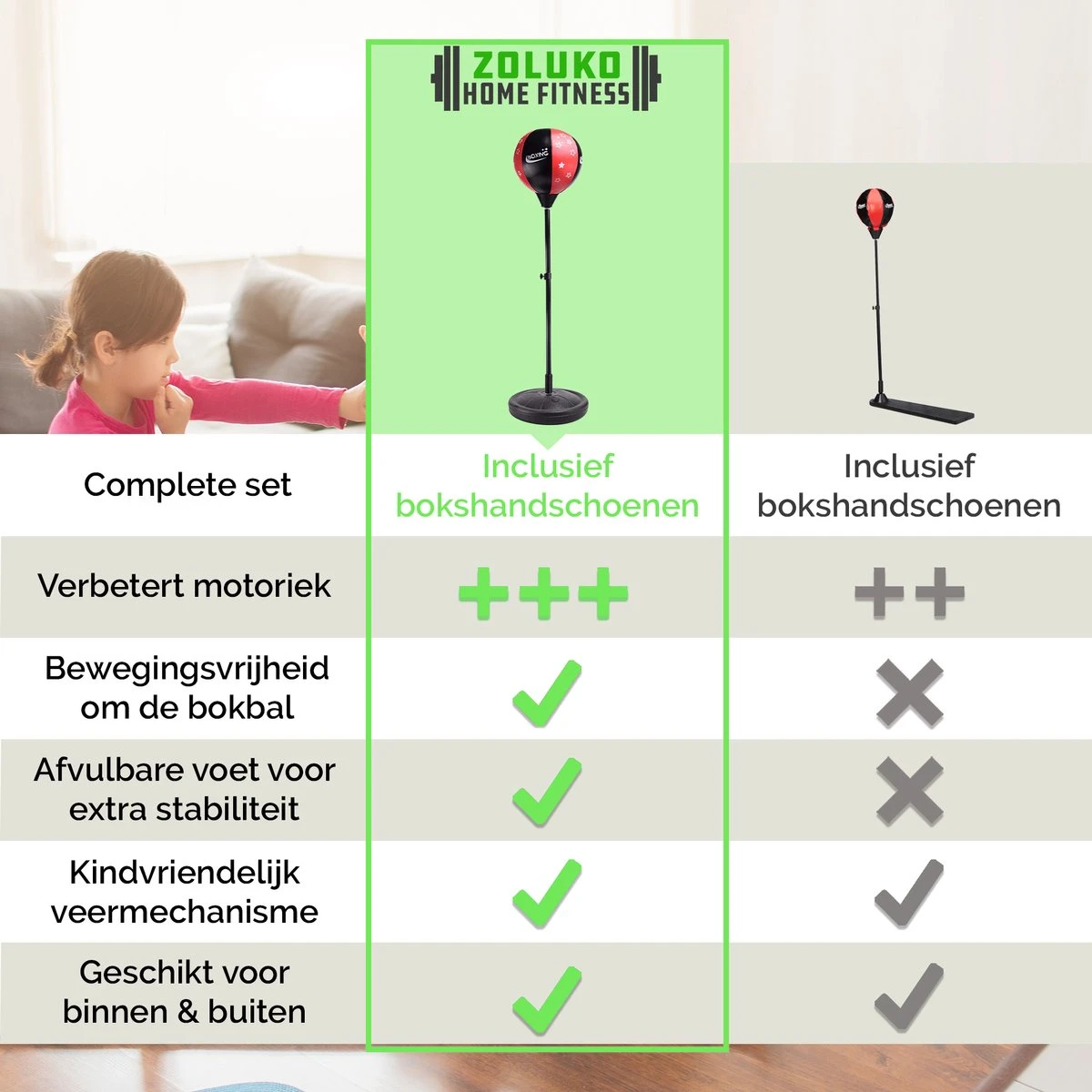 Voordelen van onze boksbal op voet voor kinderen: